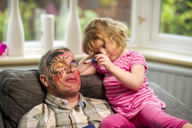 down her face, laughed loudly at the three-year-old’s antics and pounded the table.